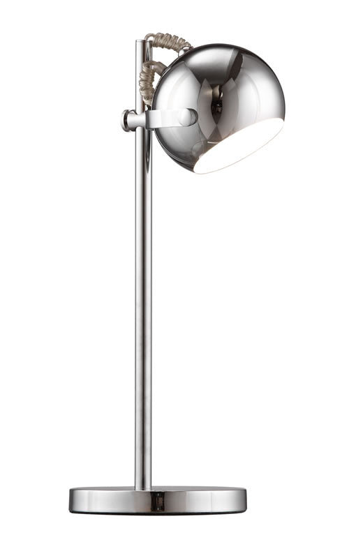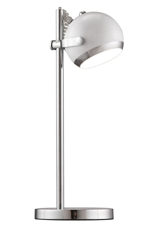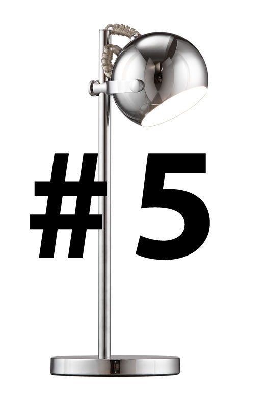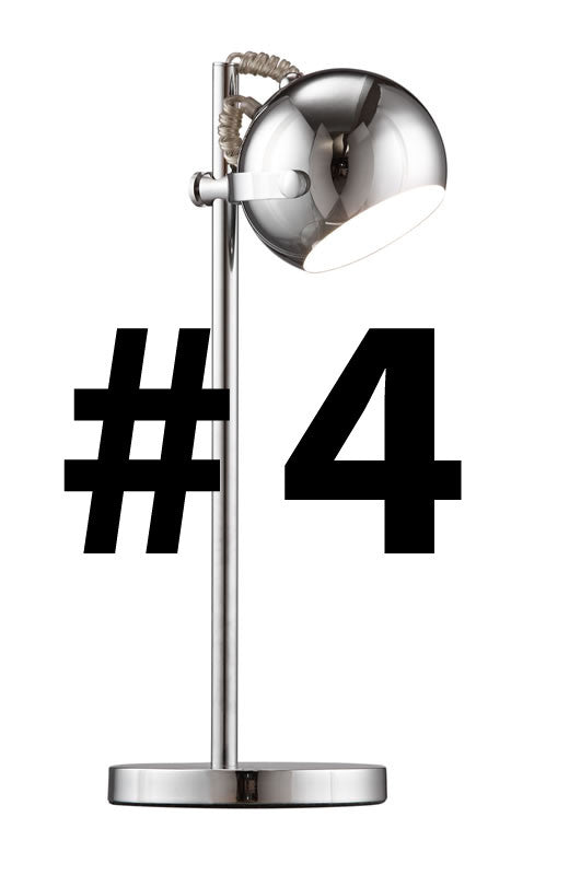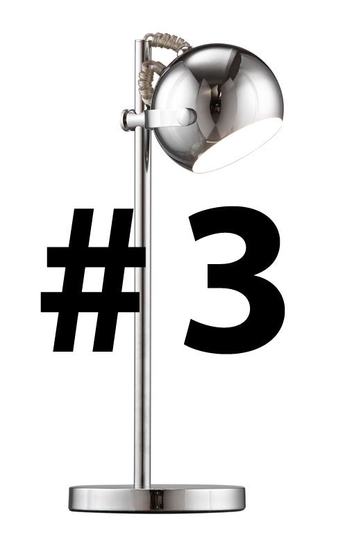 Perfect for any small space. The Cyber table lamp is constructed of chrome. 40w max bulb is included. Comes in white, black or chrome finishes. It's UL approved.